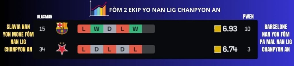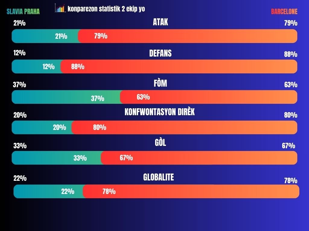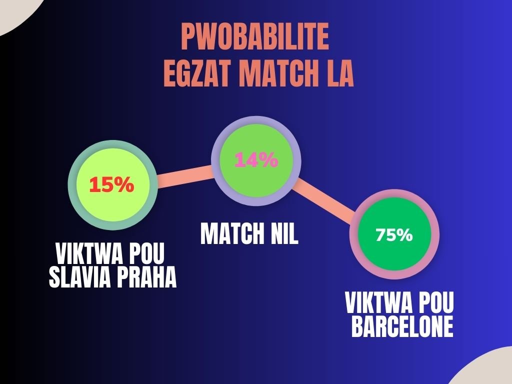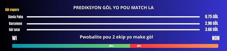Ekip Barcelone lan ta dwe make pou pi piti 3 gòl, gen posibilite pou Slavia li menm tou make gòl Pwobabilite pou Slavia make se 40%